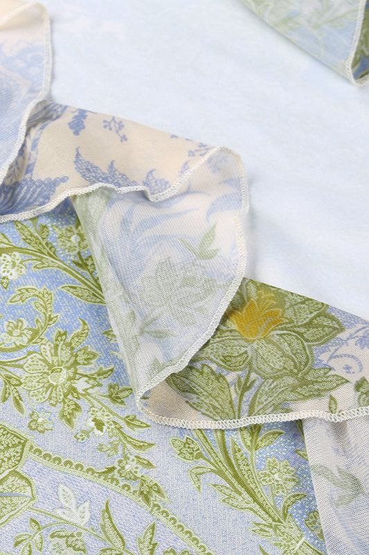 Trägerloses, figurbetontes Maxikleid aus geblümtem Netzstoff