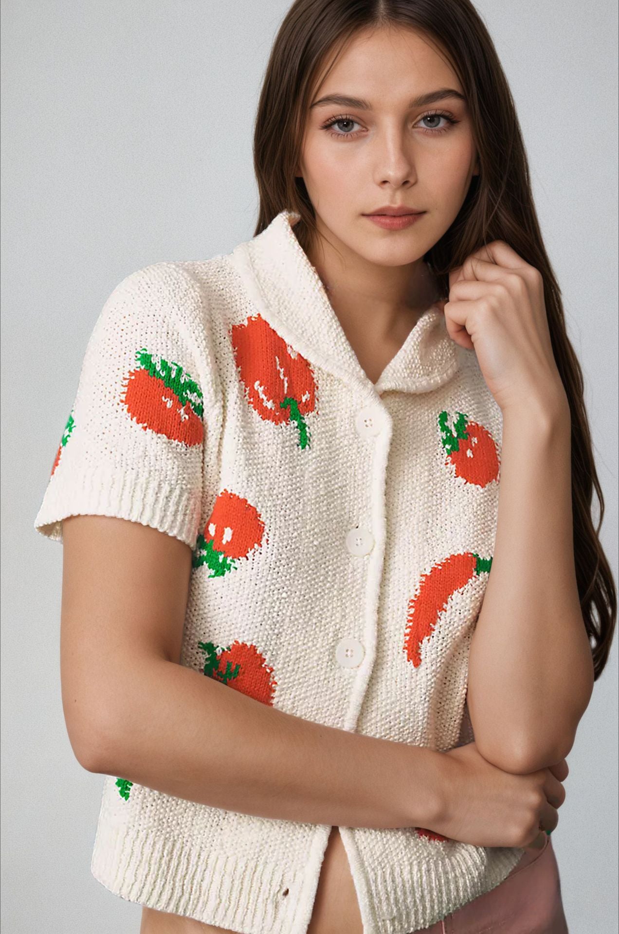 Jacquard-Strickcardigan mit kurzen Ärmeln
