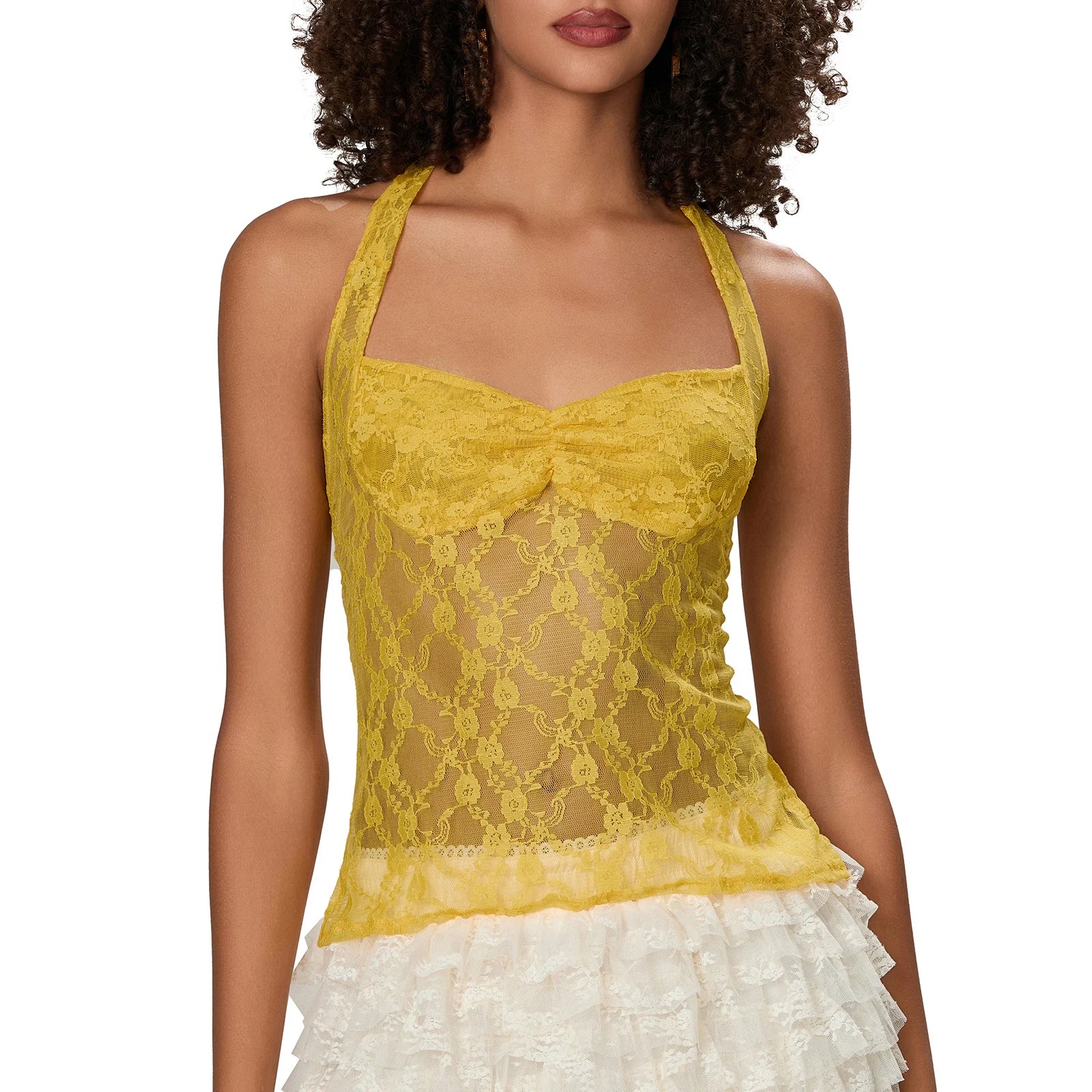 Crop Top mit Neckholder und Schnürung aus Spitze