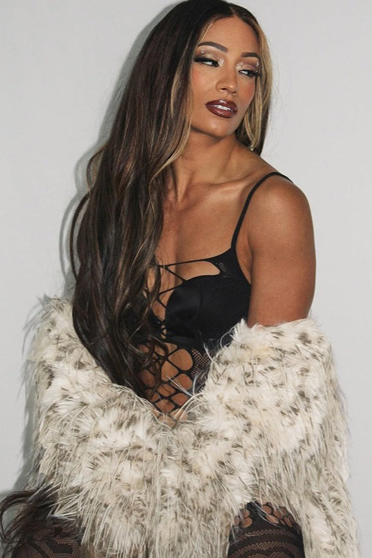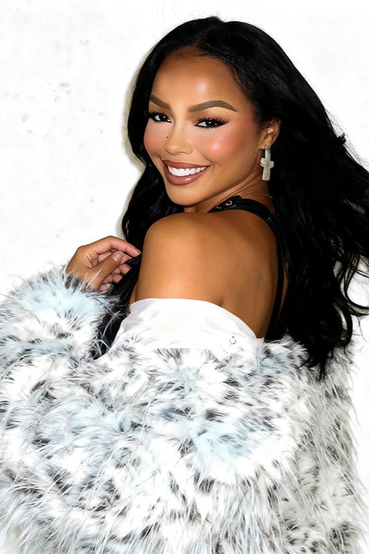 Leopard Print Long Fur Collared Slim Coat