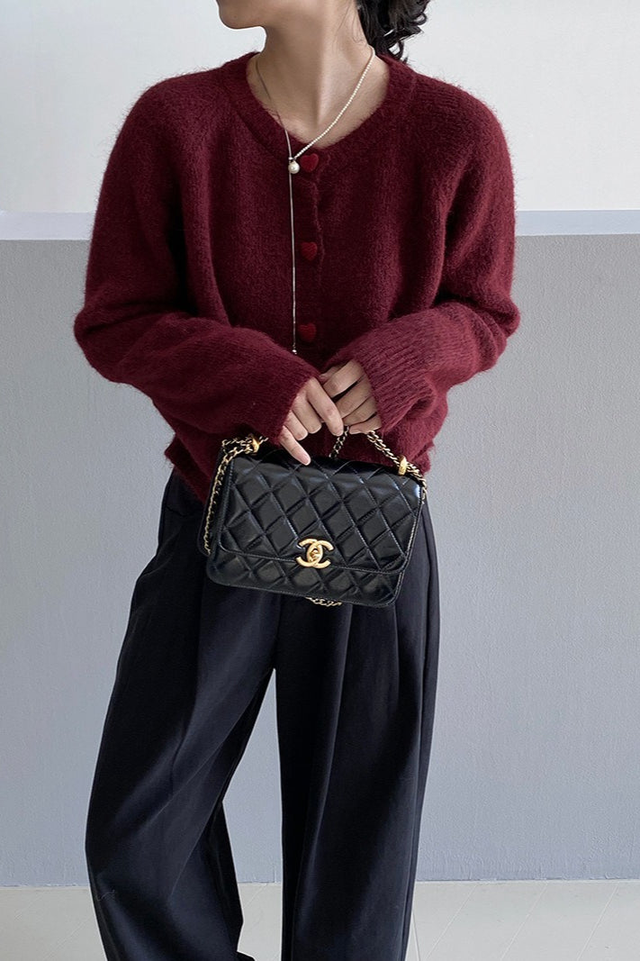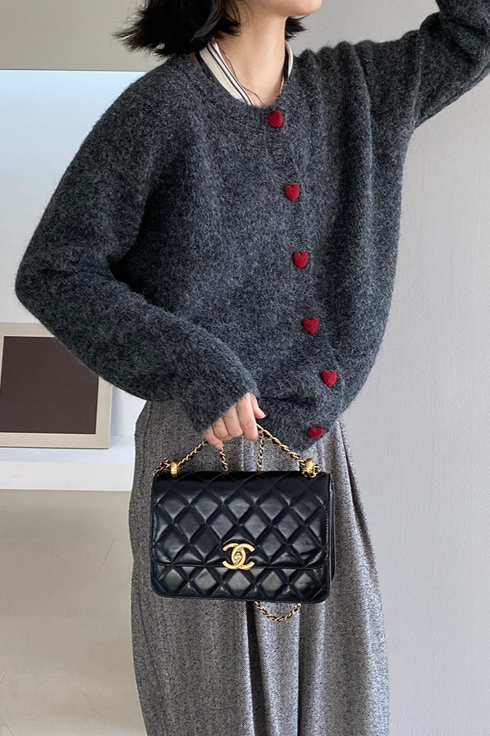 Oversize-Strickjacke mit Herzknopf und Rundhalsausschnitt