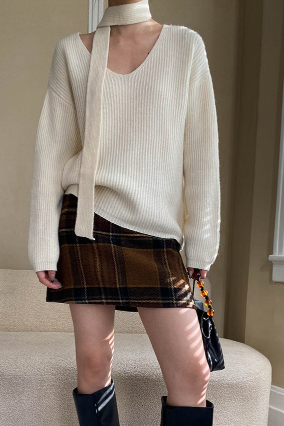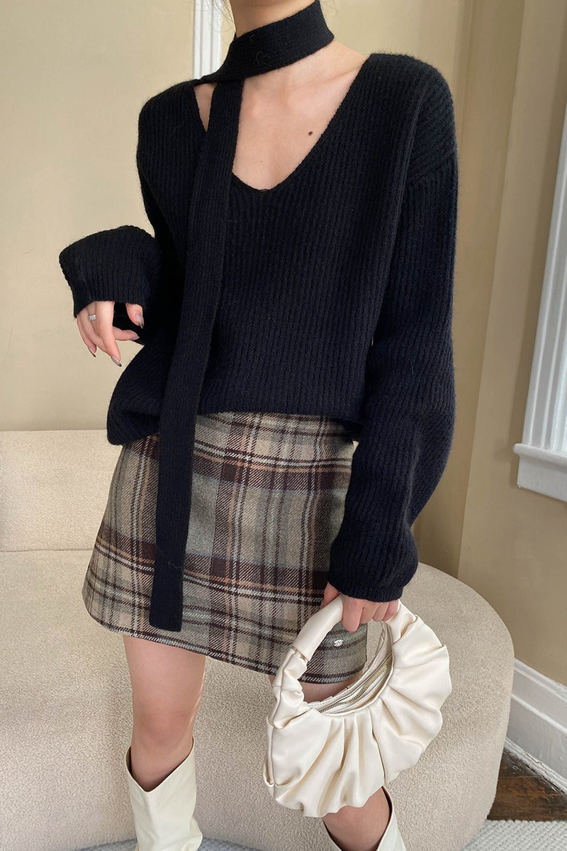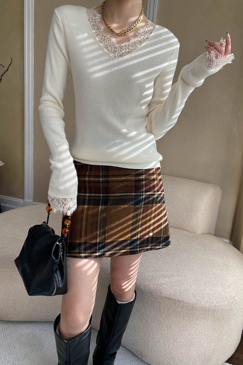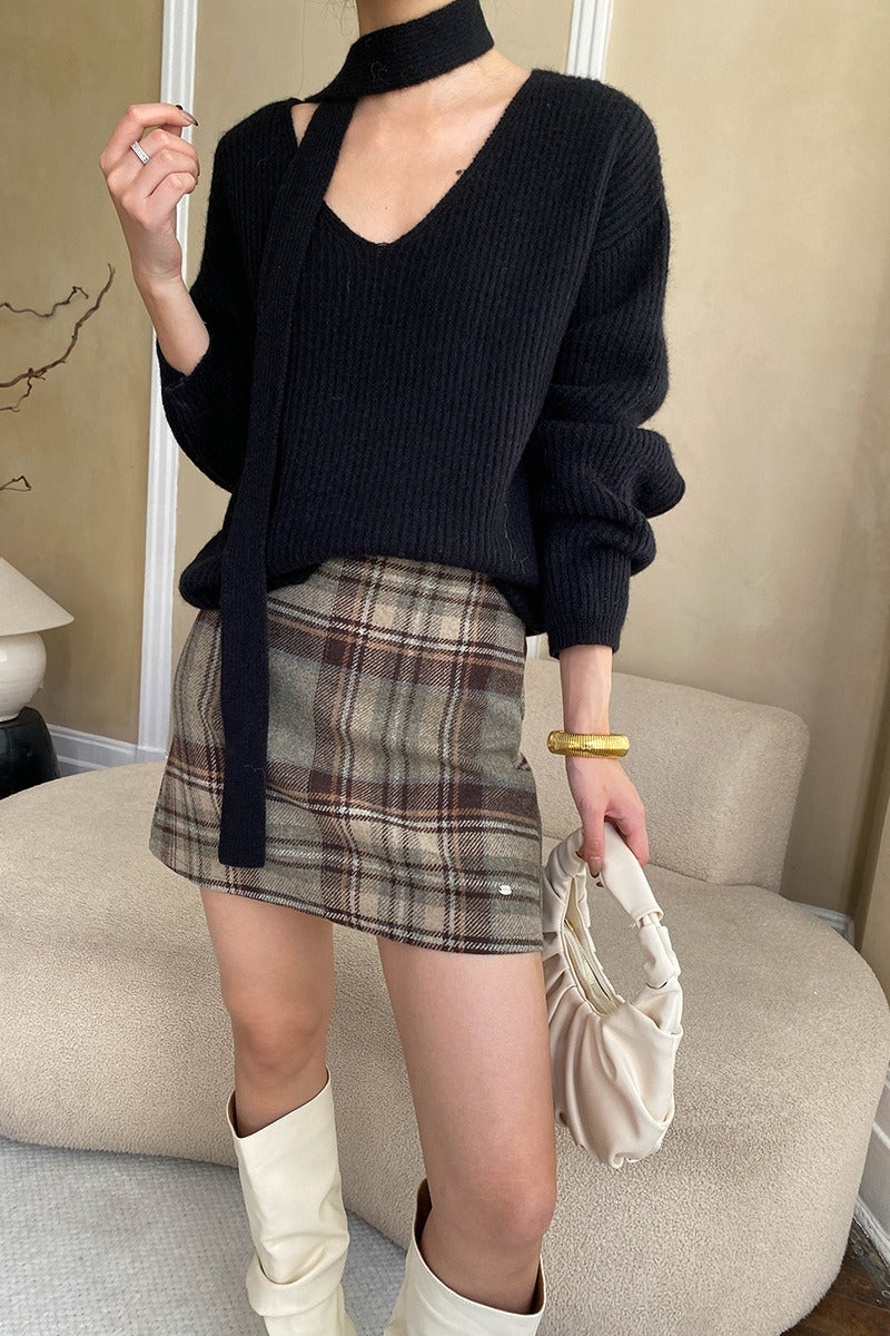 Karierter, farblich abgesetzter Rock mit hohem Bund