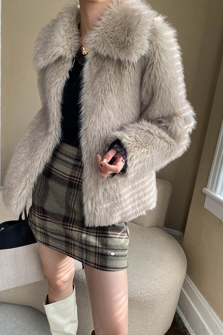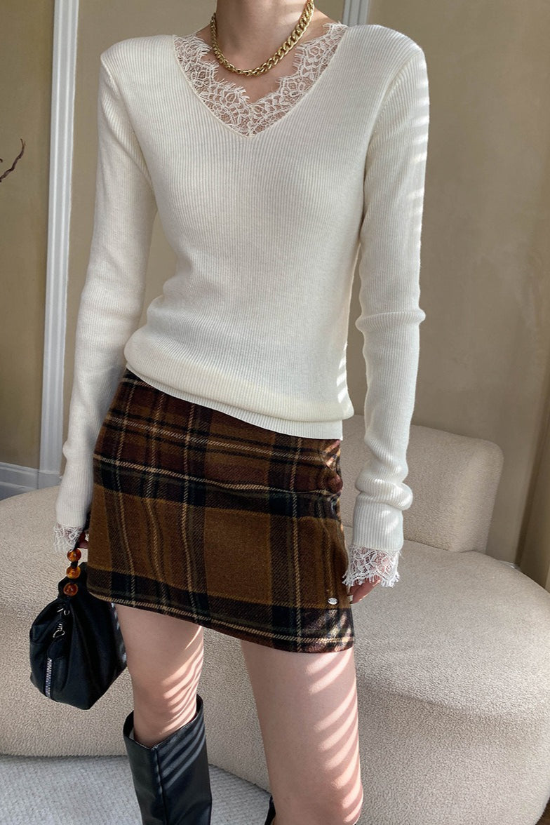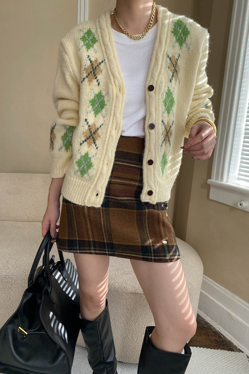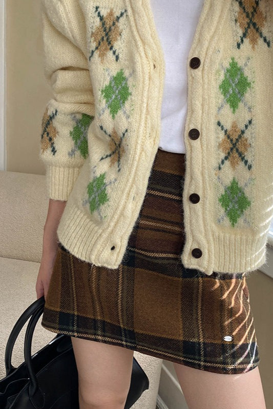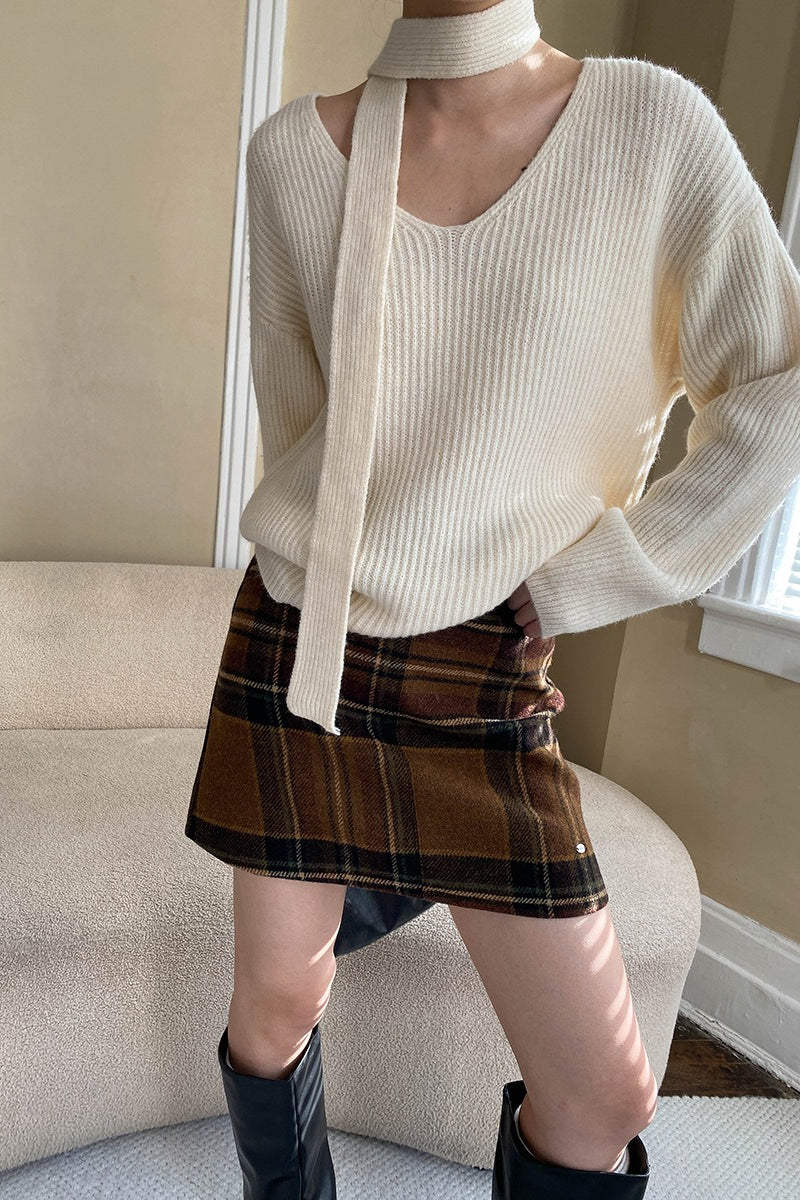 Karierter, farblich abgesetzter Rock mit hohem Bund