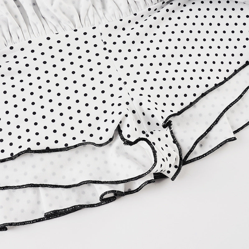 Polka Dot Patchwork Color Block Cute Tiered Slim Mini Skirt