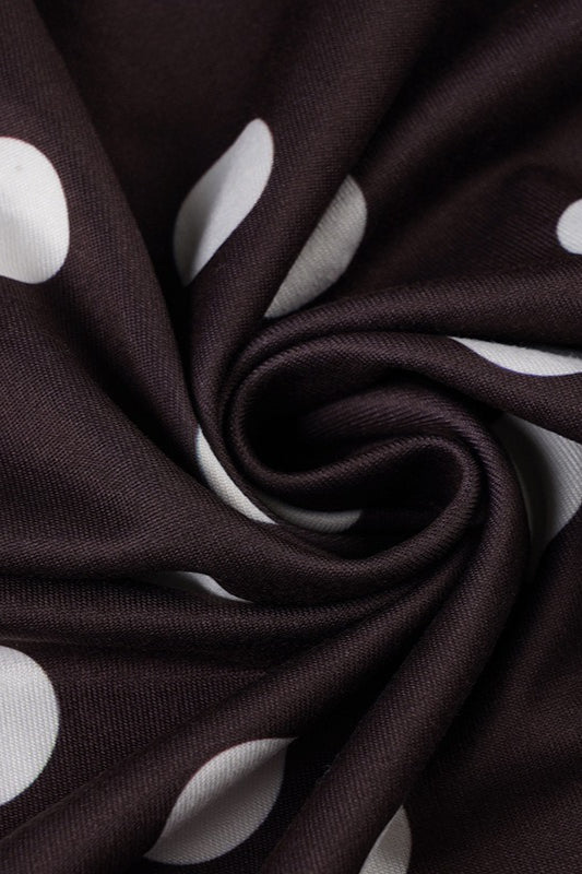 Gepunktetes, figurbetontes Maxikleid mit U-Ausschnitt und Rüschen