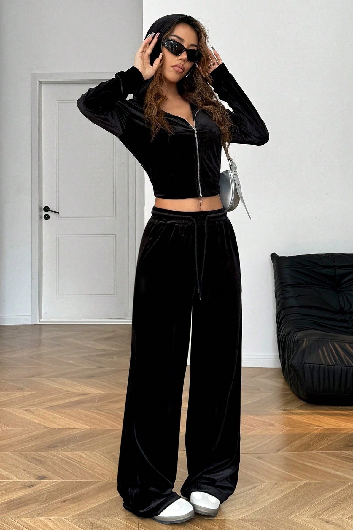 Relaxed Solid Crystal Crop Two Piece Set