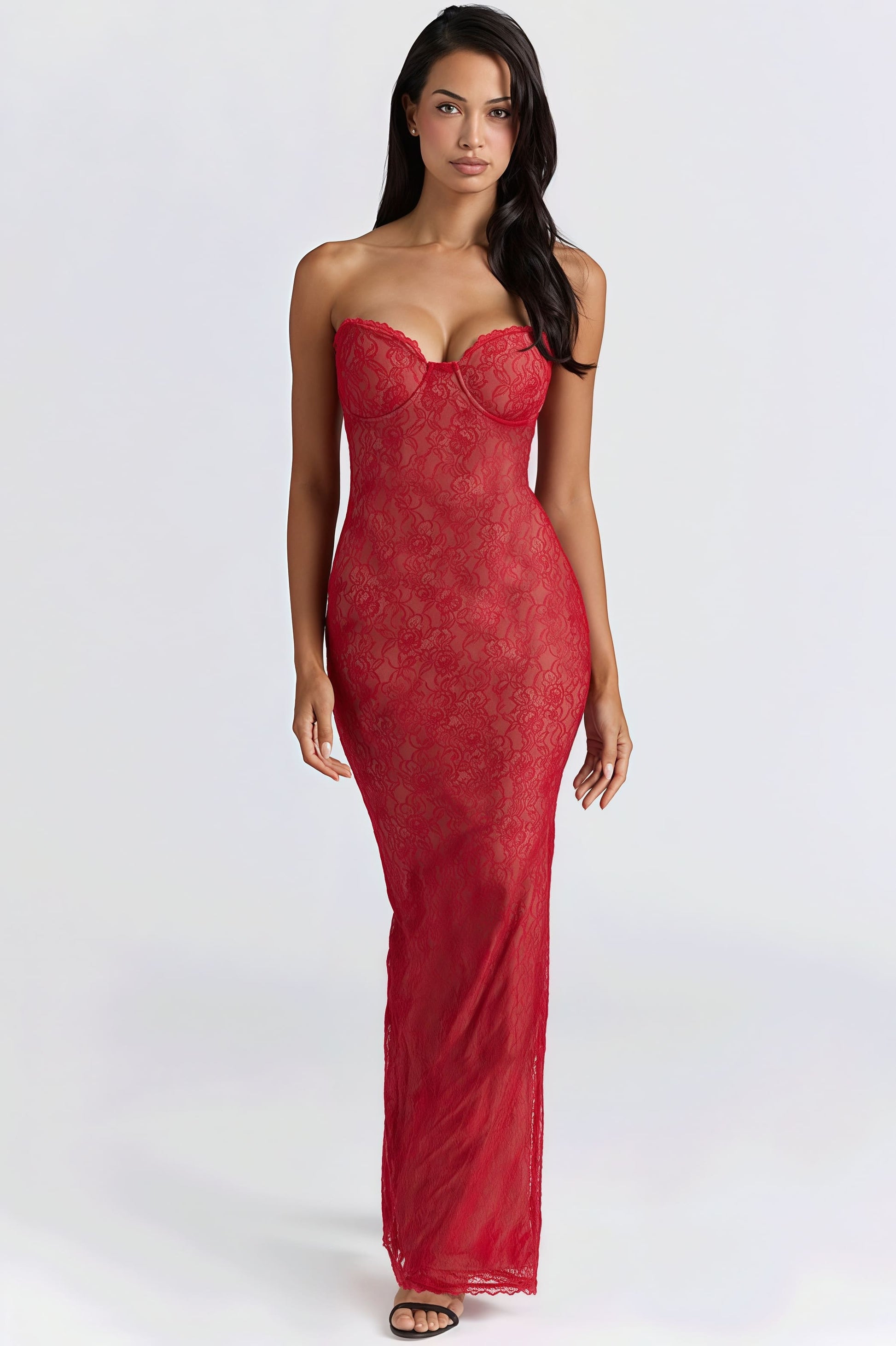 Sexy Lace Sheer Shawl Bandeau Maxi Dress