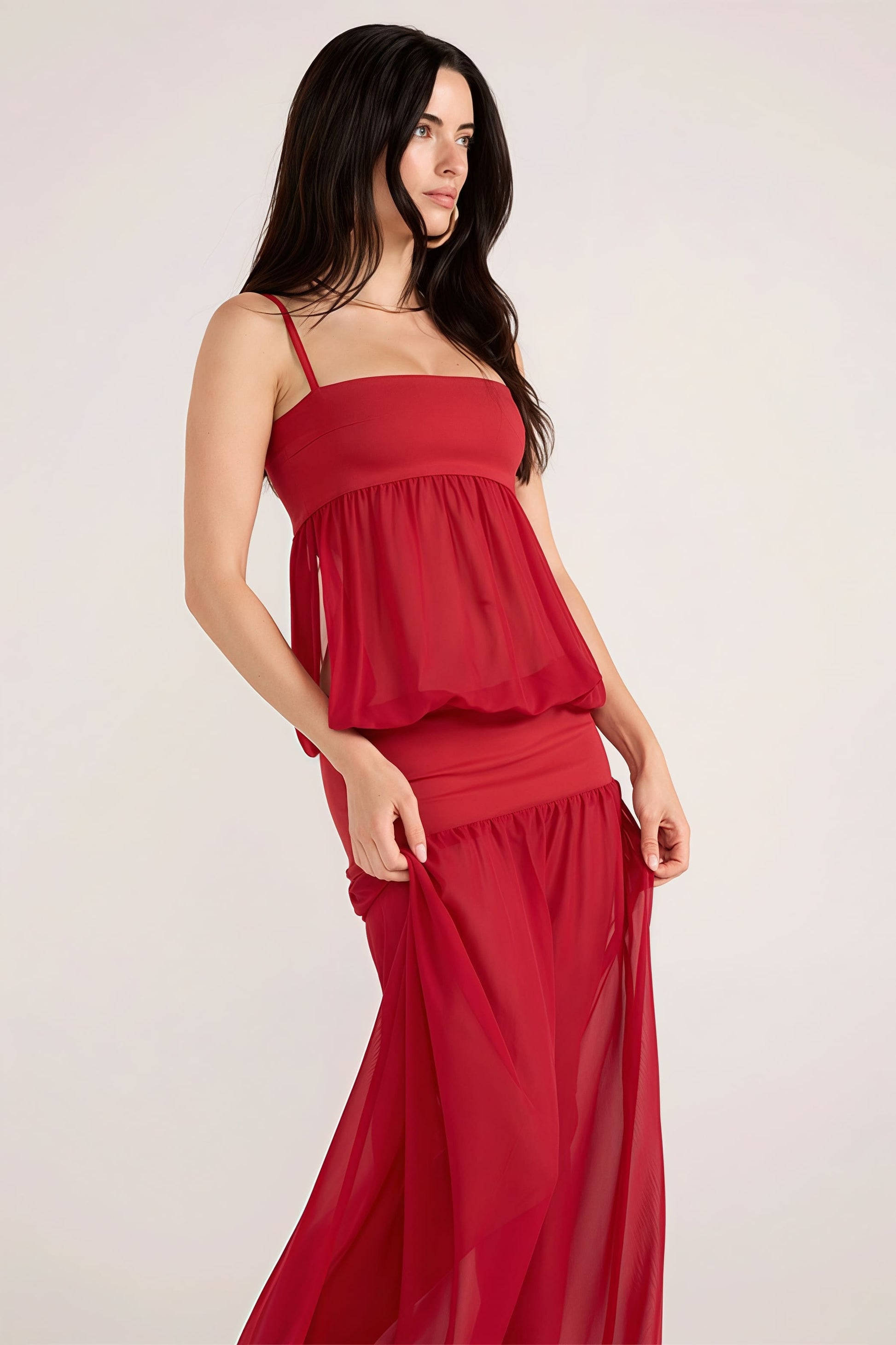 Sexy Patchwork Sheer Solid Cami Maxi Dress