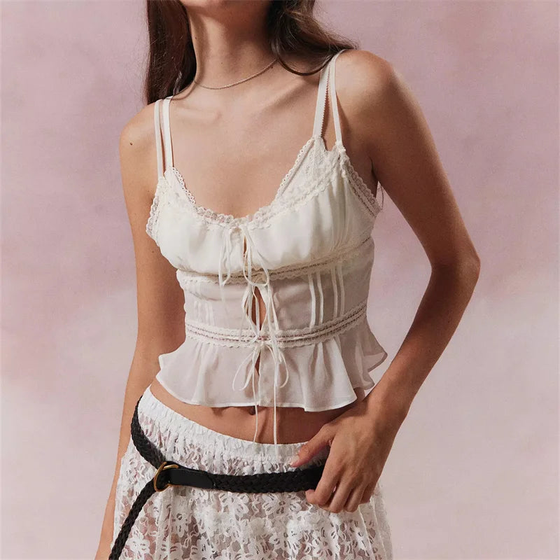 Transparentes Spaghetti-Crop-Top mit Schnürung