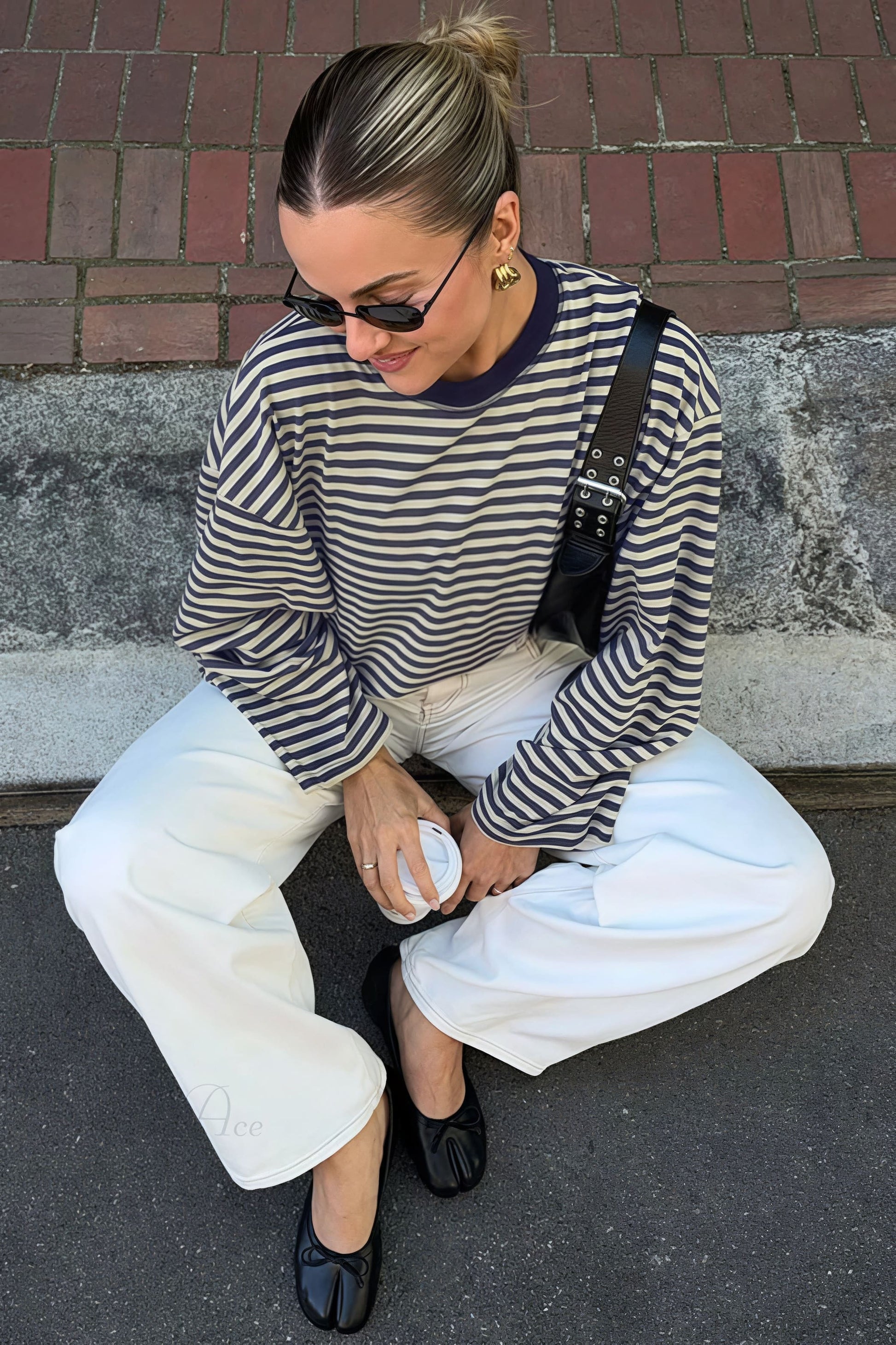 Gestreiftes, farblich abgesetztes Langarmshirt mit Rundhalsausschnitt und lockerer Passform