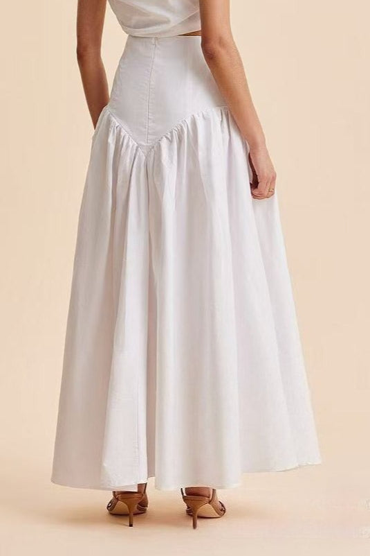 Stylish High Waist Button Patchwork White Maxi Skirt
