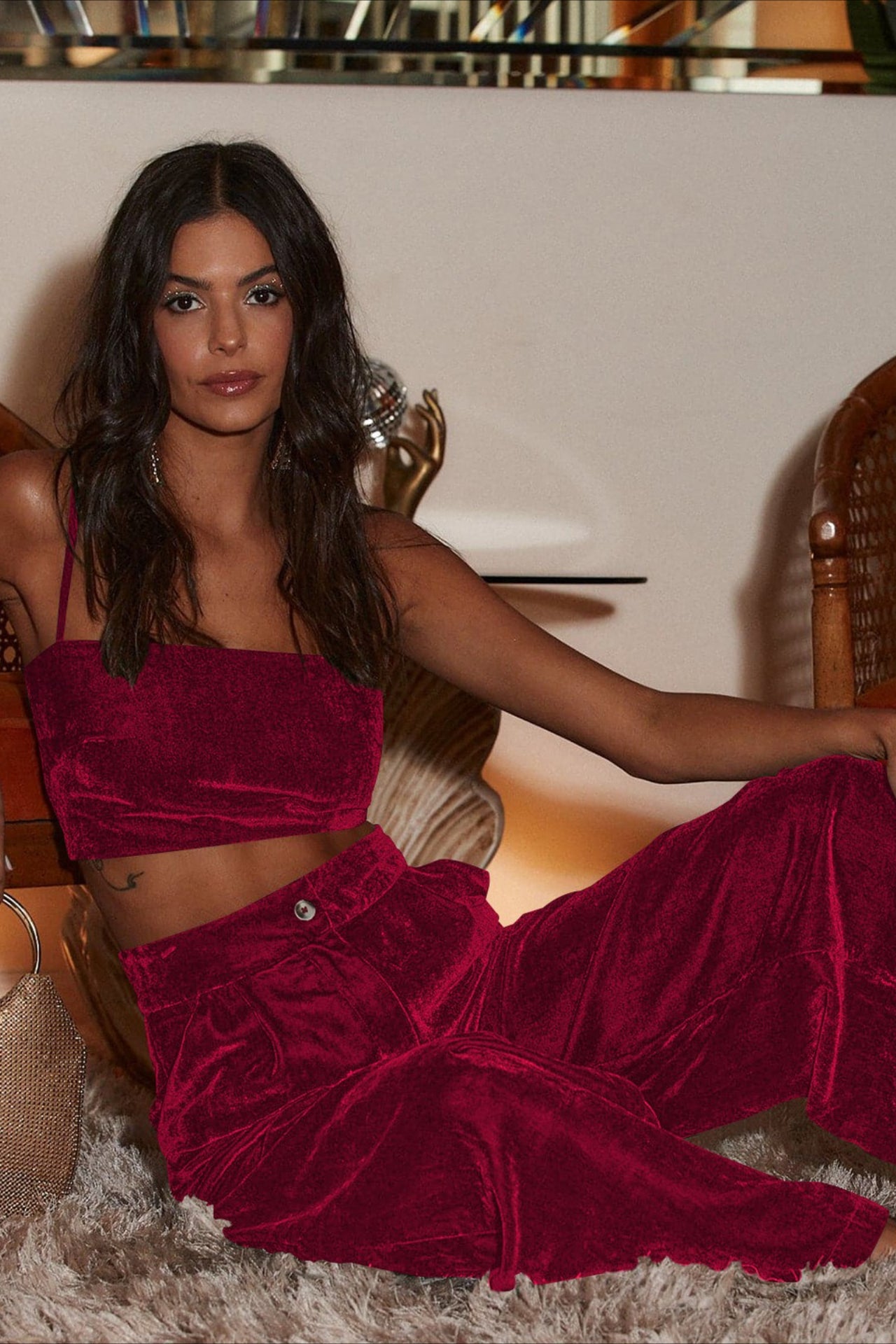 Wildlederhose mit lockerem Schnitt, Knopfleiste, geradem Bein und weitem Bein