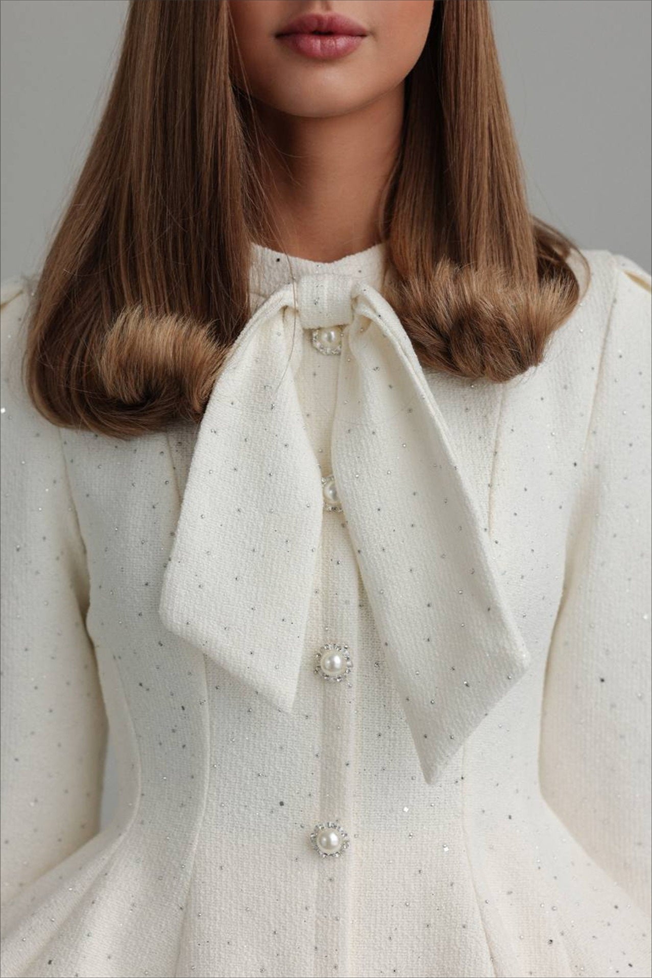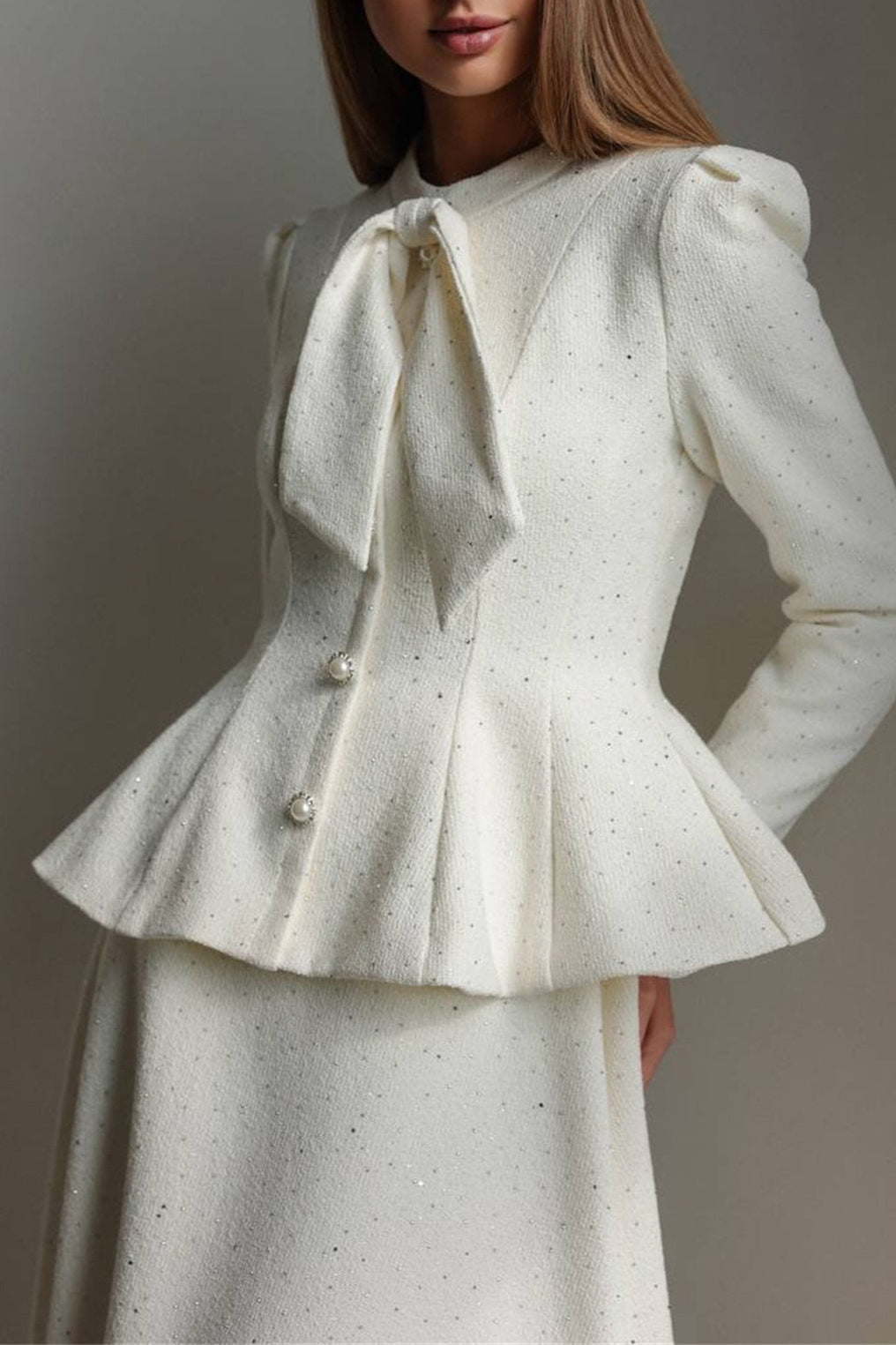 Zweiteiliges Set aus Tweed-Kleid mit Strasssteinen und schmaler Taille