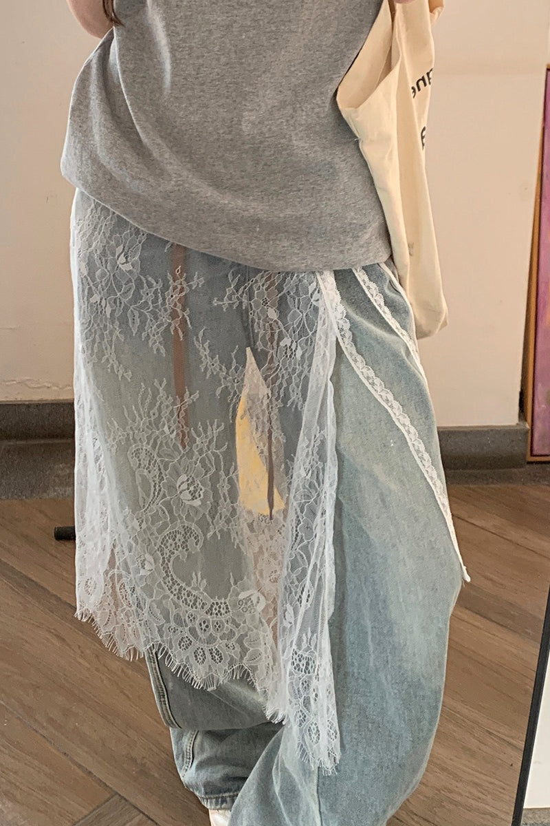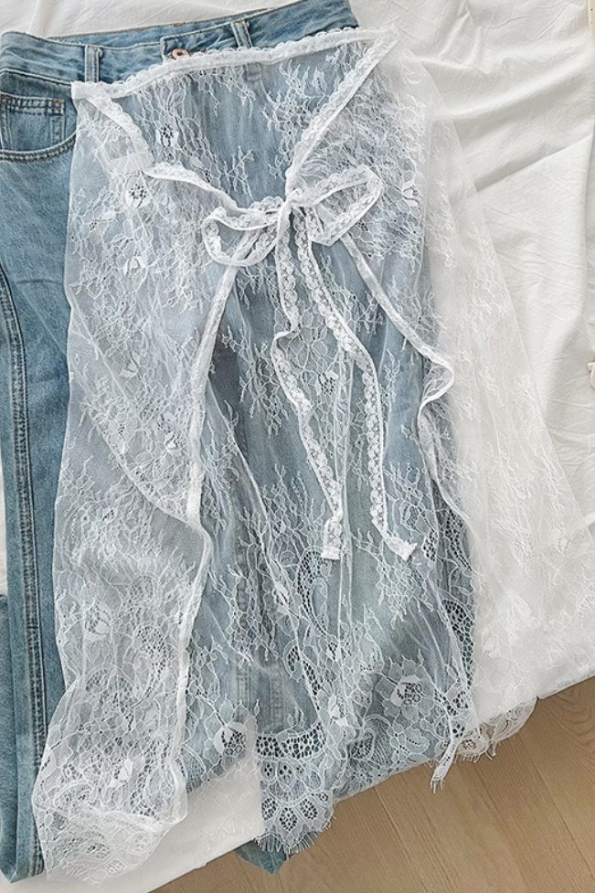 Unique Layered Lace Apron Drawstring Versatile Mini Skirt