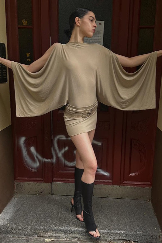 • Ärmel: Fledermausärmel